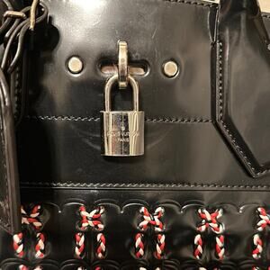 Superb medium model Louis Vuitton City Steamer handbag in black leather braided, hardware in silver metal, double handle in black leather, black leather removable strap to be worn accross the body allowing the bag to be worn in the hand or on the shoulder.