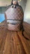 Stylish Louis Vuitton backpack with iconic monogram. Features front zip pocket and adjustable straps. Perfect for daily use.