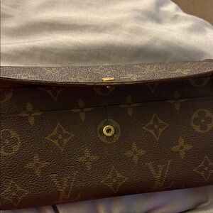 Sophisticated wallet with iconic monogram design. Features a rich brown color. Ideal for everyday luxury.