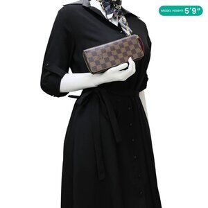 Louis Vuitton Clemence Damier Ebene Zippy Wallet Brown