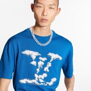 Louis Vuitton Cloud Jacquard Blue White Logo Wool Short Sleeve T-Shirt Medium M