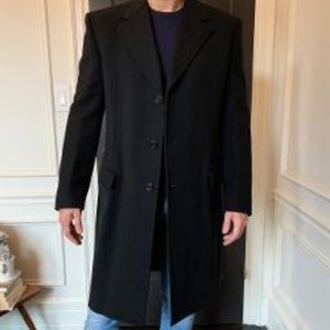 Louis Vuitton twill coat! 100%wool.  Used , but great condition with exception of the lining.  See pics for lining fraying at vent and hem.  Have tailor drop a new lining in it or leave it - no one sees the inside anyway.  Garment bag is included.  It's a European 50 (US 40) and fits more like a EU size 48 (US 38) according to my husband. :) see measurements below: