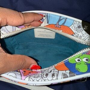Vibrant Louis Vuitton cross body bag with playful cartoon design. Features a colorful exterior and blue interior. Perfect for adding a fun touch to your style.