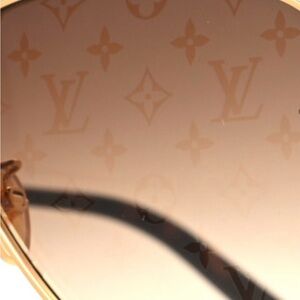 Louis vuitton Stylish gold aviator sunglasses with gradient monogram lenses. Perfect for a chic look.
