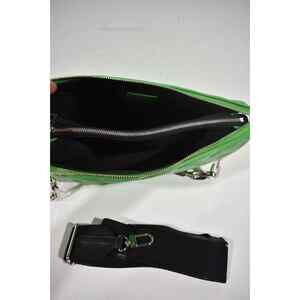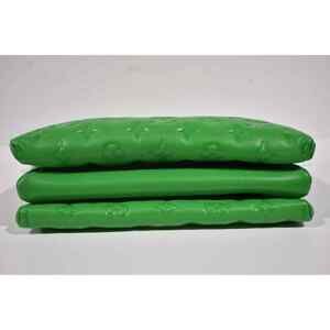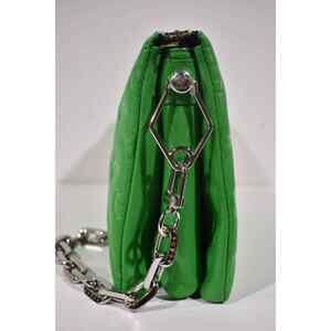 embossed Foamed Puffy Lambskin The bold motion green monogram on the embossed puffy lambskin of this Coussin PM handbag is perfectly complemented by the silver hardware and silver metal chain