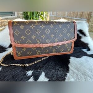 Very nice clean authentic Louis Vuitton dam clutch and comes with crossbody conversion kit and 44 inch crossbody chain