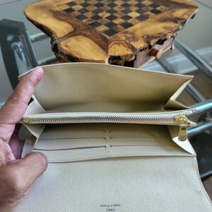 Pristine condition, no callouts, authentic, made in France 2012, very clean bag,, hard to find on this condition for the this price... Stylish Louis Vuitton wallet with a checkered pattern. Features a classic design in beige and brown.