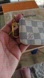 Elegant Damier Azur canvas. Features gold-tone hardware. Compact and stylish.