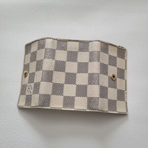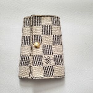 Louis Vuitton key holder in Damier Azur. It is white and gray color.