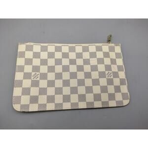 Louis Vuitton Damier Azur Neverfull MM GM Wristlet Pouch Cream Gray