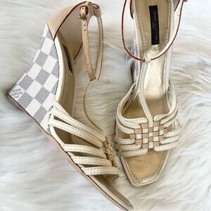 Louis Vuitton Damier Azur Wedge Sandal Heels