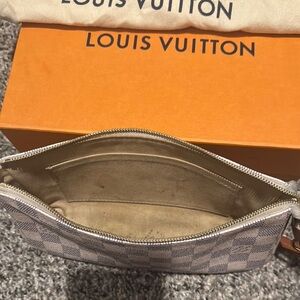 Louis Vuitton Damier Azur Wristlet with Tan Strap