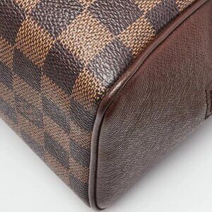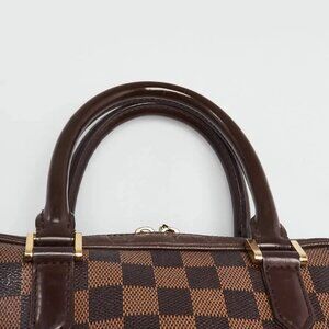 Material: Damier Ebene coated canvas with chocolate leather trim