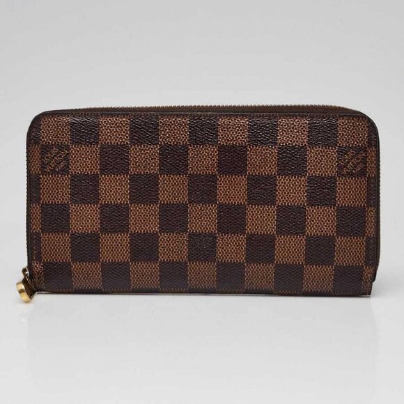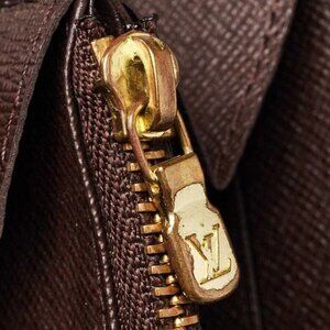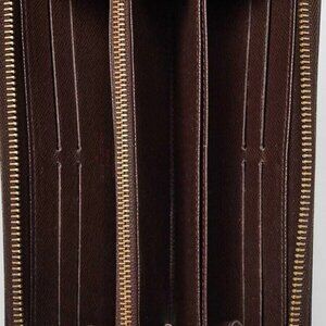 Condition The exterior coated canvas is clean but does have rubbing and wear to the edges. The glazing has wear, cracking and signs of use throughout. The hardware is bright and crisp with surface scratches. The interior leather has rubbing, stretching of the card slots, with light wear throughout. Details Overall Condition: Gently used Exterior Condition: Gently used Interior Condition: Gently used Includes: LV box Material: Damier Ebene coated canvas Handles: Closure/Opening: Single zip around closure Interior Lining: Cross-grain leather lining Interior Pockets: Twelve card slots, three flat pockets, one zip pocket Hardware: Goldtone Origin: Spain Production Year: 2011 Handle Drop: Measurements: 7.75" L x 1" W x 4.2" H Date/Authenticity Code: CA2121