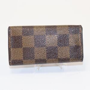 Authentic Louis Vuitton key holder in classic Damier Ebene coated canvas with brown leather interior. Features four gold-tone key hooks, snap closure, and embossed Louis Vuitton signature inside. Compact, durable, and perfect for everyday use.