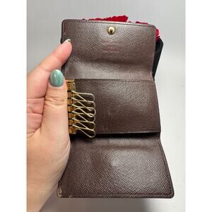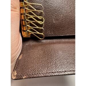Very good/good condition. Some color loss on key rings in interior. Snap is still bright & shiny and secure.