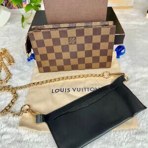 Louis Vuitton Damier Ebene Bucket Pouch PM crossbody bag with chain. NICE! RARE!