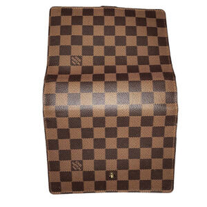 Brown and tan coated canvas Louis Vuitton Damier bene medium ring agenda cover.