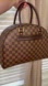 Stylish Louis Vuitton satchel with iconic checkered pattern. Features sturdy handles and elegant design.