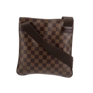 This Louis Vuitton Damier Ebene Pochette Melville is a sophisticated crossbody bag crafted in the house’s signature Damier Ebene coated canvas with smooth leather trim and gold-tone hardware. The design features a front flap with magnetic closure, an adjustable shoulder strap, and a well-organized interior, making it ideal for everyday use.