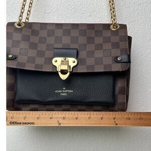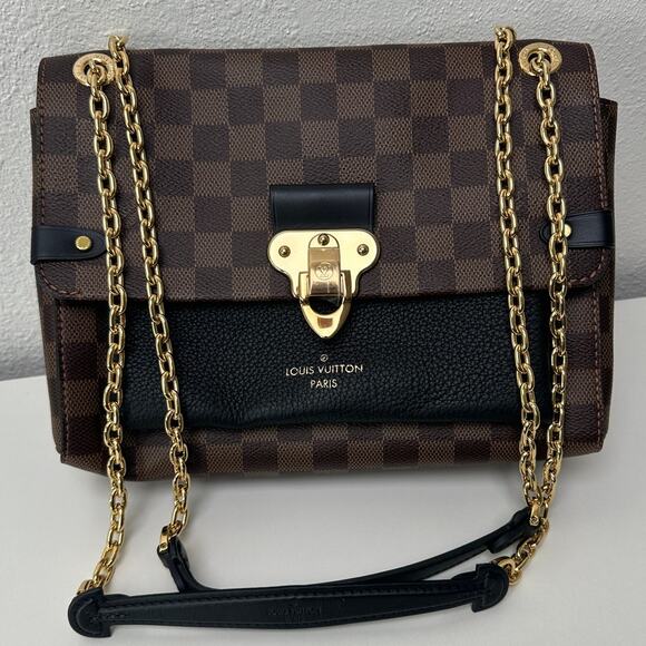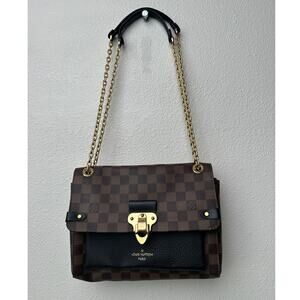 Louis Vuitton Damier Ebene Vavin PM Shoulder Bag – Black Leather & Brown Canvas