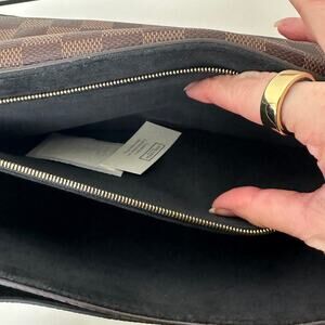 Classic and sophisticated, this Louis Vuitton Vavin PM is crafted in the iconic Damier Ebene coated canvas paired with smooth black leather trim for a timeless yet modern look. The structured silhouette is finished with gold-tone hardware, adding an elegant contrast to the rich brown and black color palette.