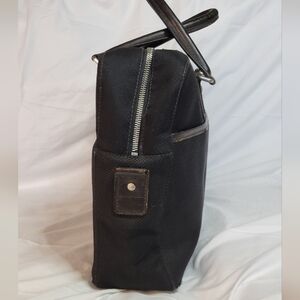 Authentic Louis Vuitton men's canvas business bag with black leather trim and silver tone metal hardware. Features a split main compartment, two interior side pockets, and one exterior zipper closed side pocket. There is moderate wear to the handles and parts of the leather trim and light wear to areas of the canvas. There are tabs on the sides for a shoulder strap, but the original shoulder strap is not included. Please see photos for condition details. Unfortunately, the date code is no longer visible because it was stamped into the fabric of the interior and has worn away over time.