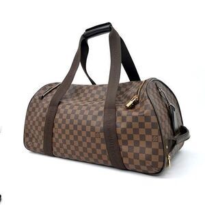 Contents: A travel bag made of Damier canvas with ample storage capacity and can be used as a tote and carrier. Body - fluff on strap decoration, slight white staining on body Handle - stains, fine fluff, scratches Strap - stains and fluff, gold buttons scratched Interior - stains, partial staining Edges - edges Minor wear Other - No key SR0147