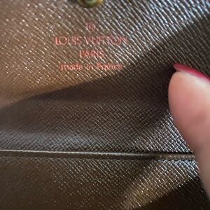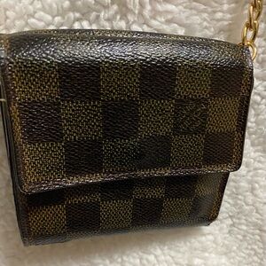 This small pre-owned LV wallet is in fair to good condition and has several inside compartments and areas to store money, credit cards, coins, bills, receipts, etc. The chain is pictured for demo purposes only and will not be included. There are some callouts including minor rubbing, stitching, edge wear, etc so this wallet is being offered as a project items.