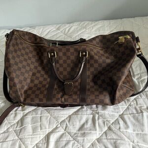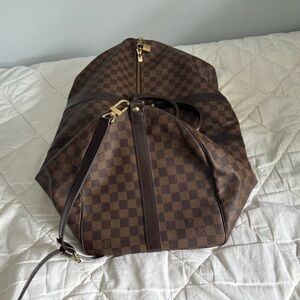 Authentic Louis Vuitton Damier ébène Canvas Keep all 55. In good condition with some minor wear overall, authentic and will be verified by Poshmark. One side of the interior handle has been repaired, but in great condition and includes shoulder strap, no luggage tag included, but includes strap holder. Wear to the interior, corners and canvas overall. Please inspect photos! Smoke free home. Thank you!