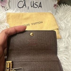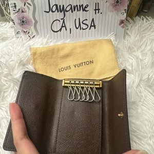 Authentic LV Damier Ebene 6 key holder. This is in good condition. The exterior is in great shape. There are some peeling on the side lining. Pls see all photos. Interior is good. The hardware is a bit tarnished but complete. Some scratches on the front button which is common from closing and opening.