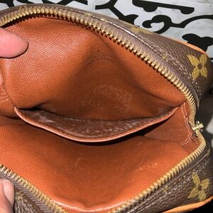 Exterior: Corner wear, scuffs, patina of vachetta, edge wear, Liquid marks Interior: Scuffs, clean Handle: Adjustable strap, edge wear, scuffs Hardware: Scratch(es), tarnished Pipings and stitches are all intact 5.75" x 8.25" x 1.75" Please make sure to check pictures for call outs Preloved bag in good condition