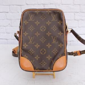 Louis Vuitton Danube Crossbody Monogram Bag Shoulder Purse Leather Brown A5356