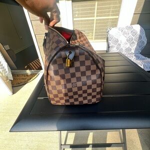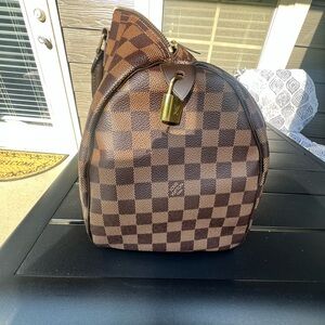 Louis Vuitton Dark Brown Checkered Bag 35 Speedy Damier Ebene, no stains