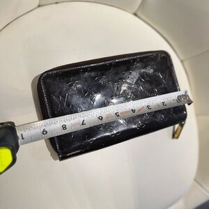 Elegant Louis Vuitton wallet. Dark brown with embossed monogram. Sleek and stylish design. Pre owned condition