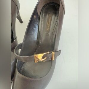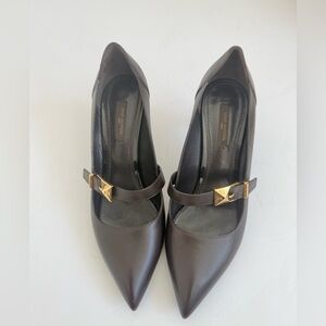 Louis Vuitton Dark Brown Leather logo buckle Mary Jane pointed toe pumps EU 39
