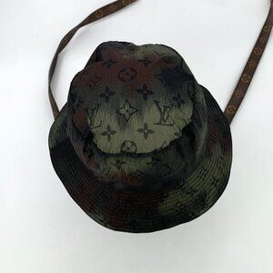 Louis Vuitton Dark Green Monogram All-Over Print Casual Camouflage Ribbon Fisherman Hat