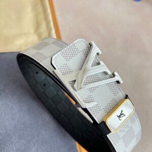Wrap yourself in premium luxury with this Louis Vuitton Daumier Azur waistband. The brilliant gold LV buckle adds a touch of sophistication, making it an essential item for your collection. Size: 100