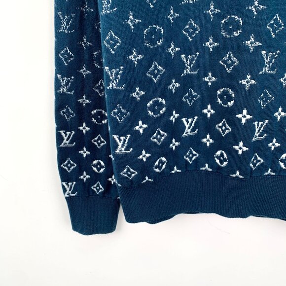 Crafted from 100% cotton, this Louis Vuitton sweatshirt showcases a sophisticated embossed monogram design. Its elegant deep blue hue and premium craftsmanship add luxury to casual attire.