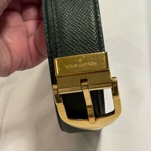 Louis Vuitton Deep Hunter Green and Gold Belt with Luxurious Gold Buckle