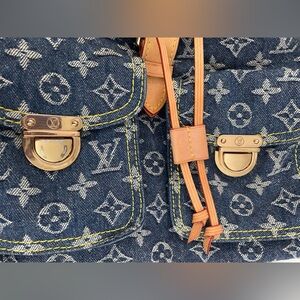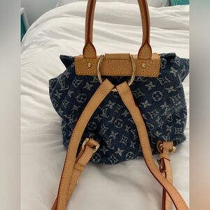 Louis Vuitton Denim Monogram Backpack with Tan Accents