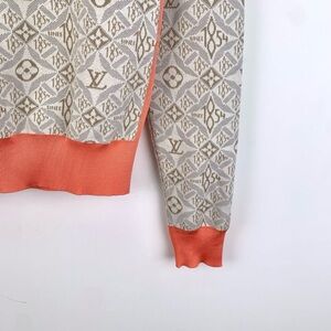 DW0261 Louis Vuitton 22 Patchwork Logo Jacquard Printed Mulberry Silk Crew Neck Long Sleeve Cardigan, Size XXS, 99% NEW!