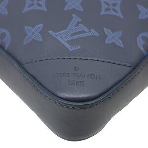 Louis Vuitton Duo Monogram Shadow Leather Shoulder Bag Navy Blue