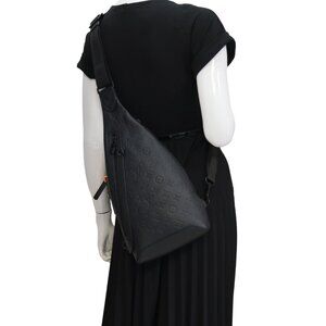 Crafted in Monogram Shadow leather, the Louis Vuitton Duo Slingbag offers a sleek and modern crossbody style. Its versatile design features multiple compartments, making it both practical and stylish in black.