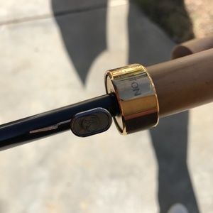 The handle is wood with a nice patina, the brass is still shiny on the points and the branded Louis Vuitton collar that holds them.