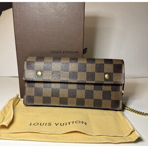 Louis Vuitton Ebene Damier Portefeuille Acordion Wallet Wristlet Authentic Bag