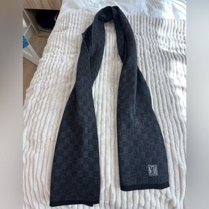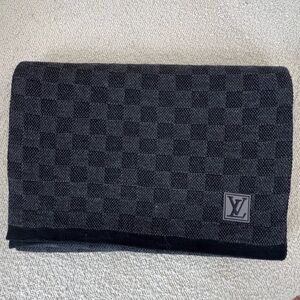 Louis Vuitton Elegant Black and Gray Checkered Wool Scarf NWT