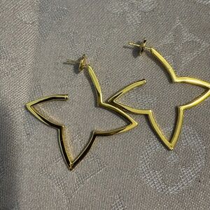 Add a touch of elegance with these Louis Vuitton logo stunning gold star earrings. Perfect for any occasion.