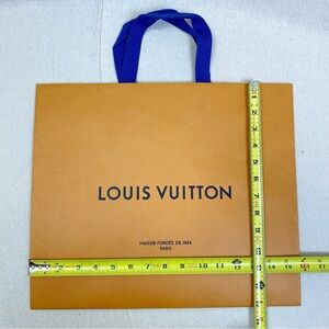 Orange shopping tote with blue handles and embossed LV signature - 15.75x13.25x6.25in excellent condition