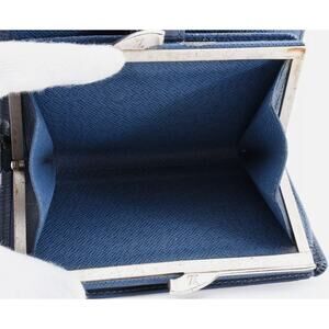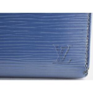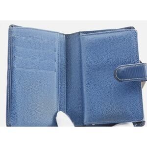 Elegant blue wallet with textured design. Features secure snap closure. Iconic LV logo embossed.